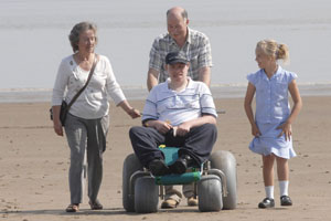The beach wheelchair was provided by the Vale-based Intersensory Club and can be pushed across sand without sinking, thanks to the wide wheels and unique design.